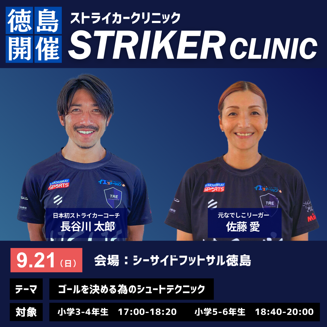 今回のストライカークリニックでは、アカデミー代表であり、日本初ストライカーコーチの「長谷川太郎」となでしこリーグでディフェンダーとして長年活躍してきた「佐藤愛」コーチが担当。ゴールを決めるコツを、ストライカーとディフェンスの両目線で伝えてまいります。
