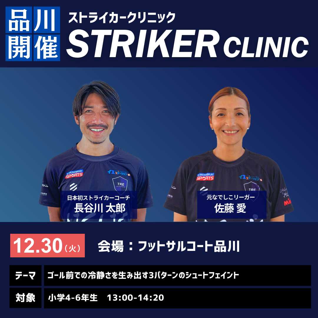 今回のストライカークリニックでは、アカデミー代表であり、日本初ストライカーコーチの「長谷川太郎」となでしこリーグでディフェンダーとして長年活躍してきた「佐藤愛」コーチが担当。ゴールを決めるコツを、ストライカーとディフェンスの両目線で伝えてまいります。
